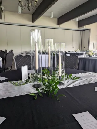 Elevate your event décor with our exquisite Clear Glass Chimney Trio, available for rent exclusively at our online store. Each trio includes three varying heights: 15", 17", and 18", creating a stunning tiered effect when grouped together. Pair will taper candles and candlesticks or pillar candles with candlesticks for a complete look! You can also add a greenery wreath to highlight the warmth of the candles.